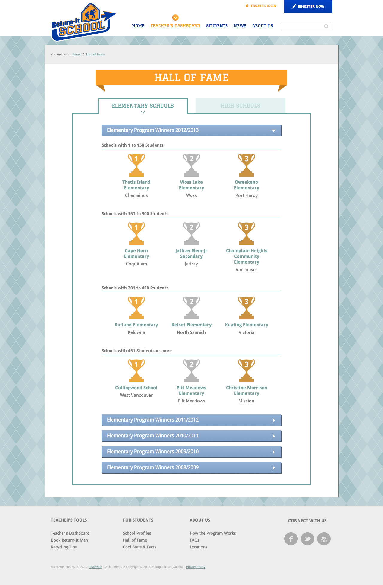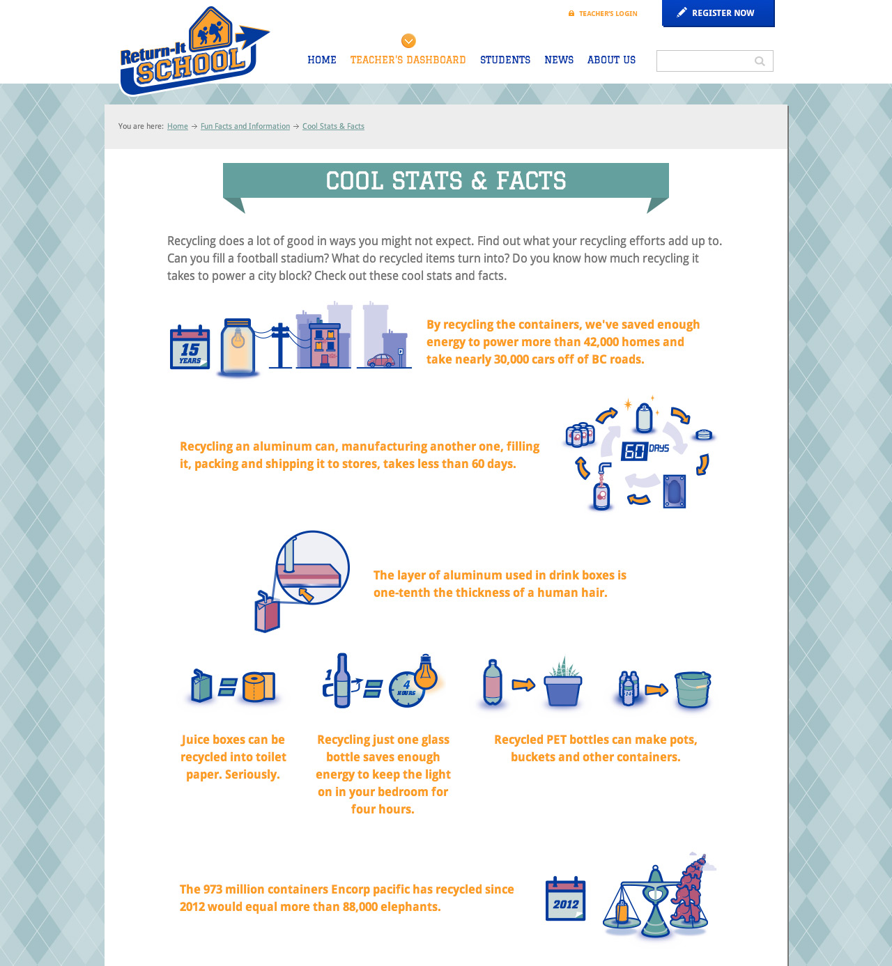 Let Class Begin — We enhanced the program by consolidating various educational material from multiple sources to provide learning material to help teachers engage students on the topic of recycling. Our research uncovered a wealth of detailed data previously being collected on the back-end during the life of the program, but remained largely unused.