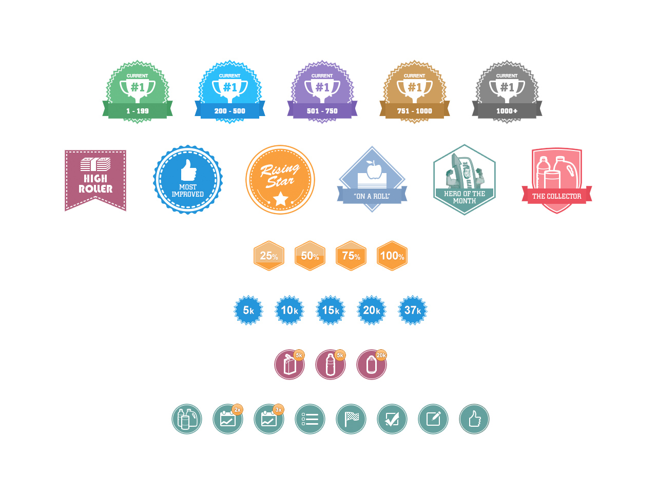 Participaction — One insight our research uncovered was that just a handful of schools excelled in collecting containers and would consequently dominate any leaderboard. In order to accommodate this, we re-factored the dashboard and leaderboards to account for both personal and community achievement — many triggered by activities that occur along the user's journey but not tied strictly to performance. For example: successful onboarding, or best month over month improvement.