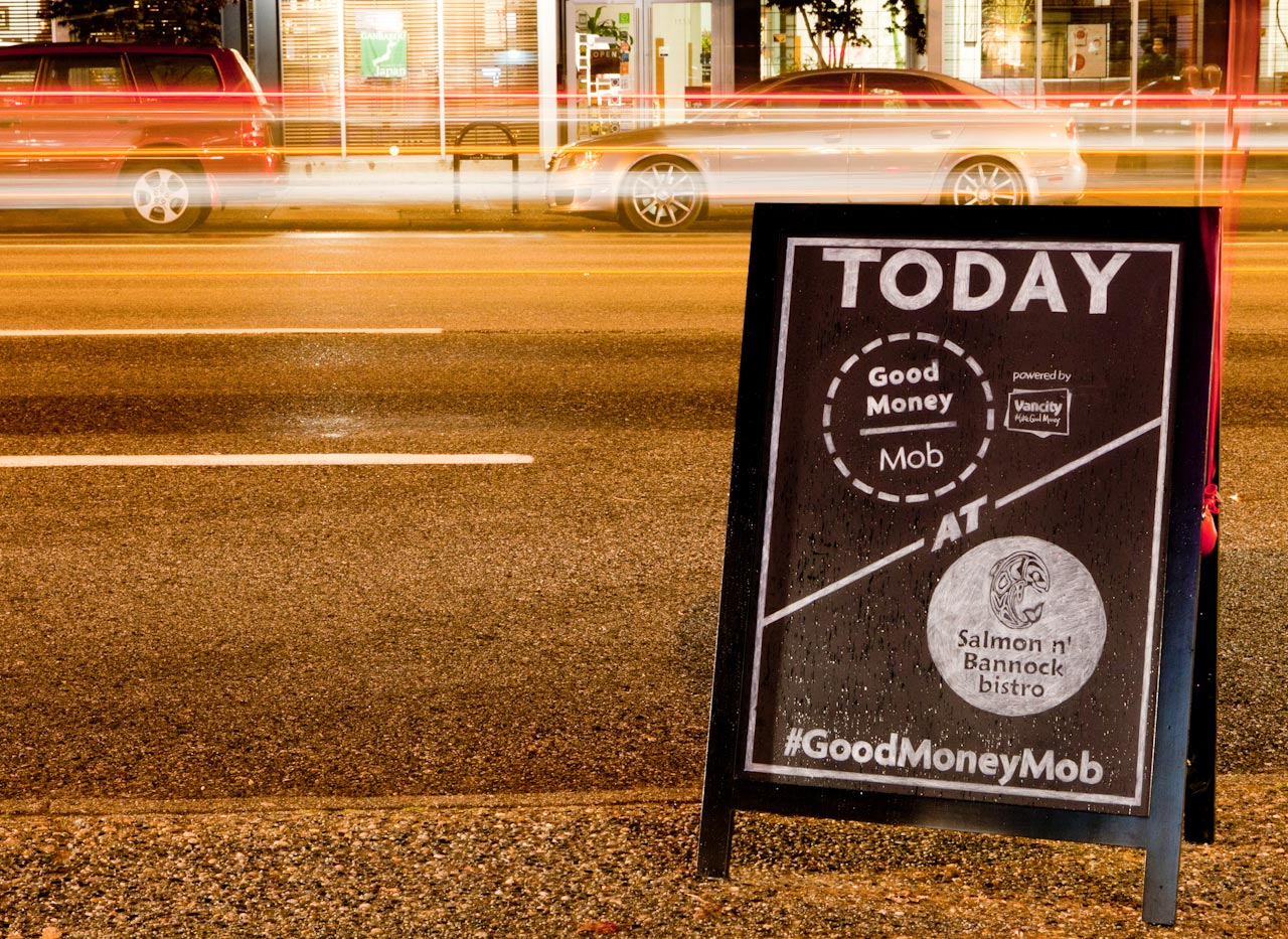 Taking it to the mob — How do you demonstrate a local credit union's unique business model of profiting by investing within the local community? If you're Vancity, you mob local businesses with a whole bunch of Good Money™.