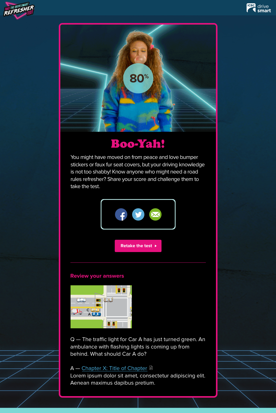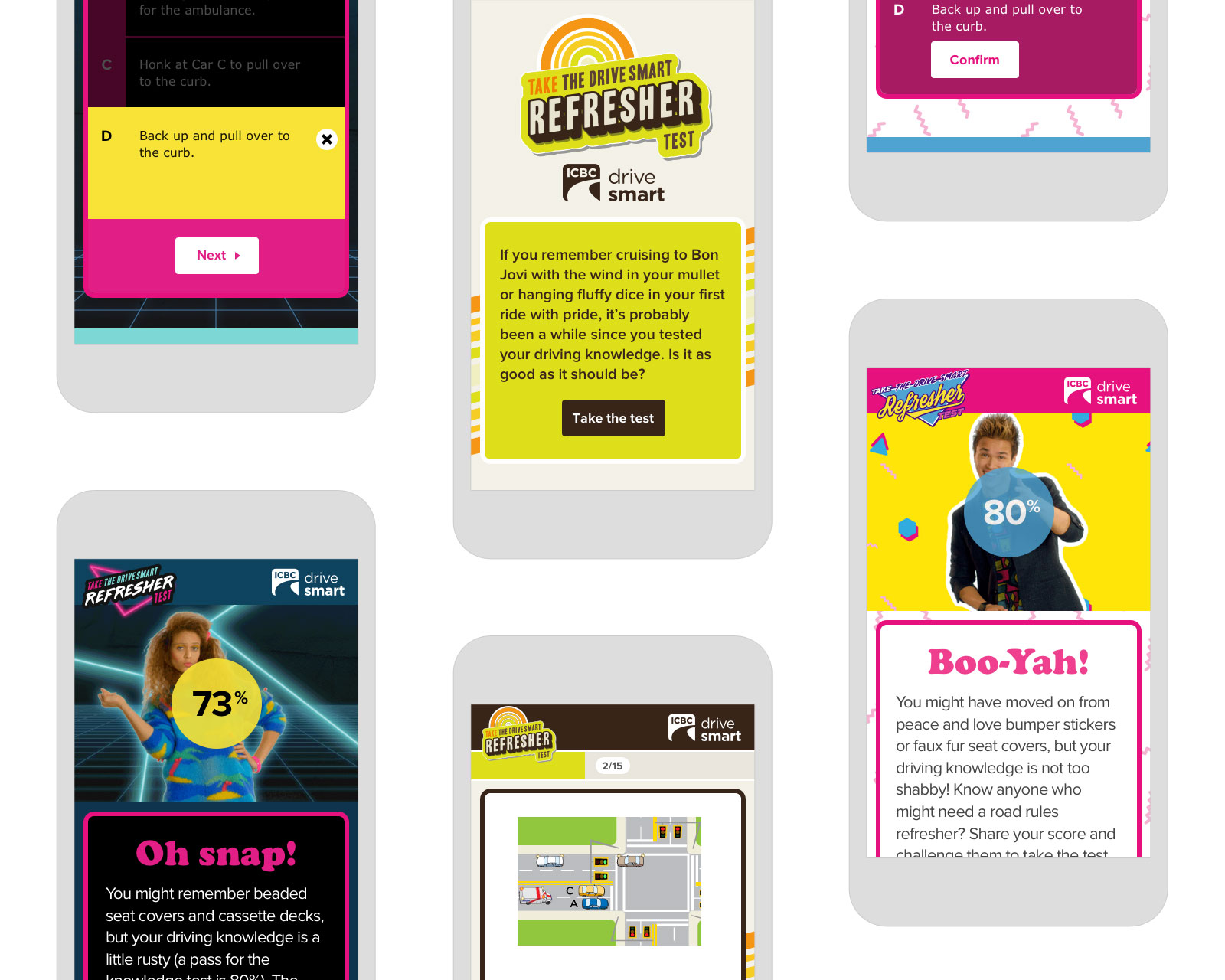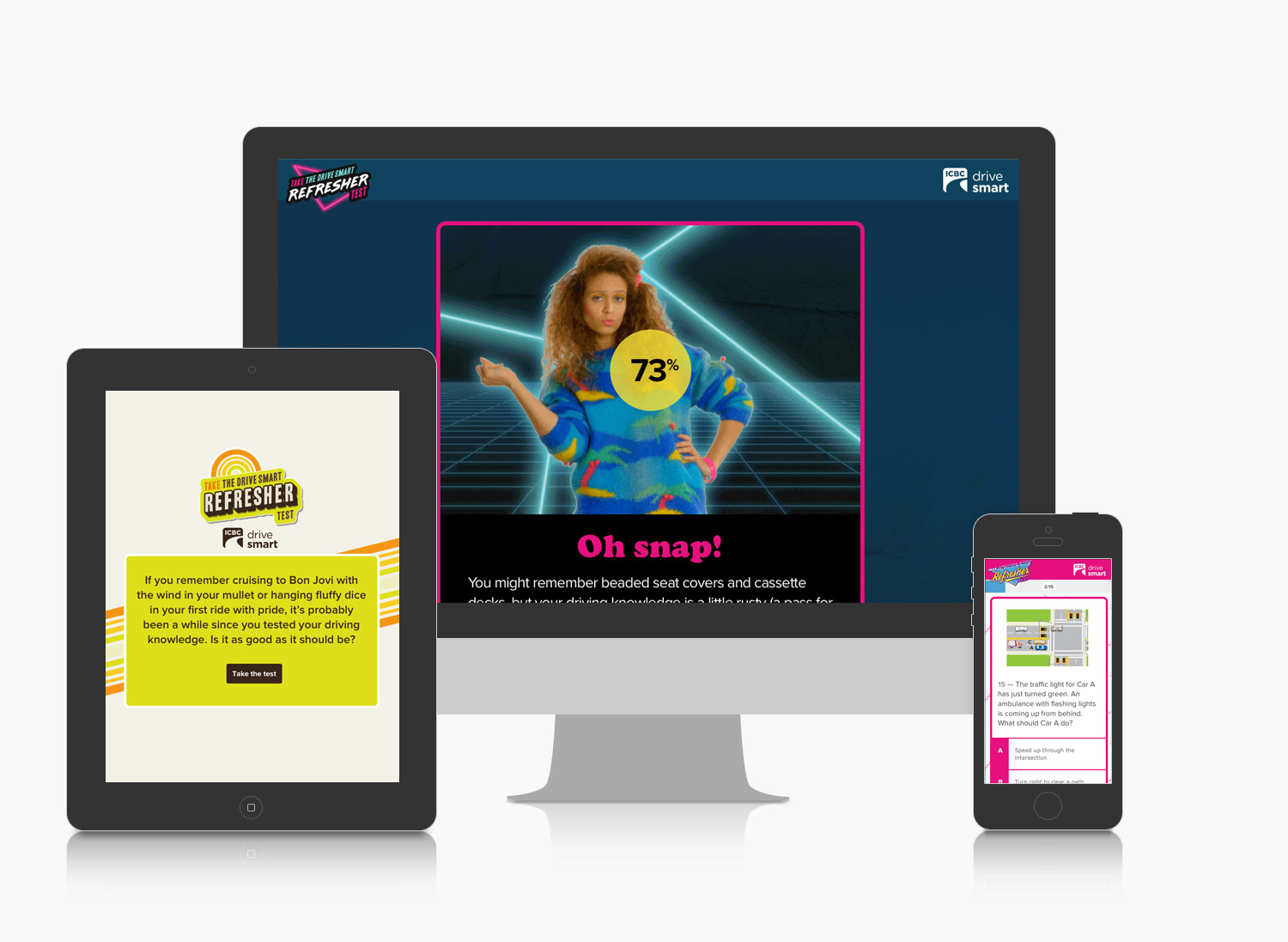 Encouraging great drivers to test their own skills with an online driving quiz in one of three retro themes.