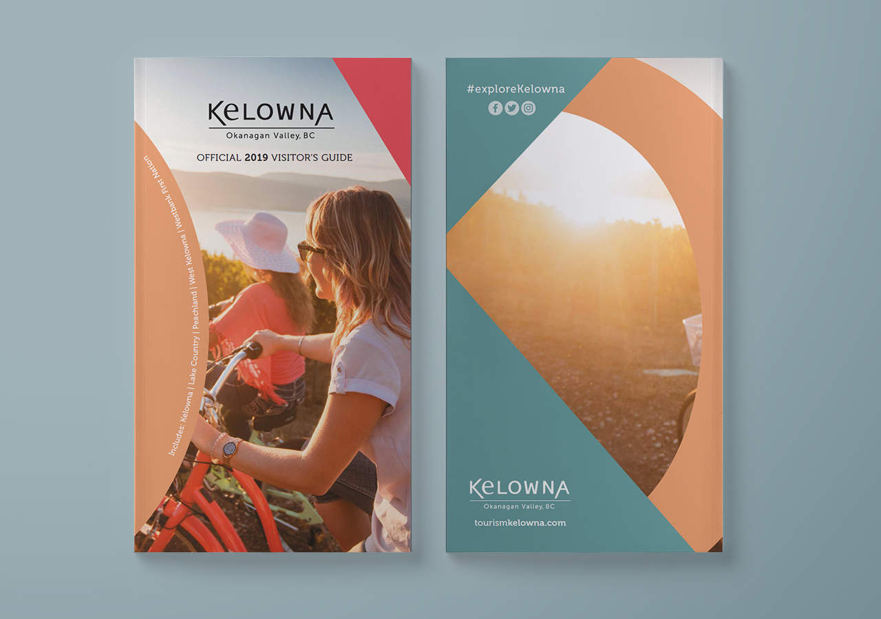 Looking inward — Tourism Kelowna already has a beautiful colour palette that evokes the distinctive personality of the city. We embraced these colours by developing a system of shapes dervied from the negative space and counters found from the logo itself — giving Tourism Kelowna a versatile toolbox that compliment their signature photography and serve as a distinct design element.